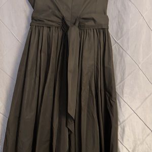 This is a beautiful, structured princess, a line style flowing formal dress with two deep pockets. A sewing and belt for the perfect waist fit J.Crew size. 8 this dress is 100% cotton has been worn one time and dry cleaned.