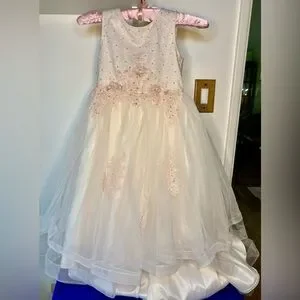 This is a like new flower girl dress. The color is called blush. Size 6 like new, made by tiptop kids.