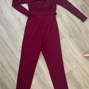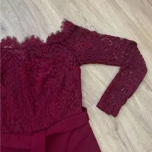 SHEIN Off Shoulder Lace Bodice Black Jumpsuit Size S 8 Burgundy