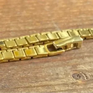 Glamorous reflective gold tone Monet bracelet. Delicate links with hinge closure; fully marked on clasp. Very good condition.