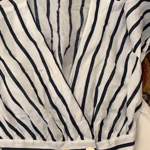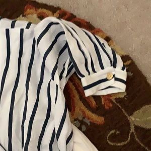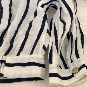 EUC linen striped cropped blouse. Gold buttons can be undone if you want to wear over a tee.