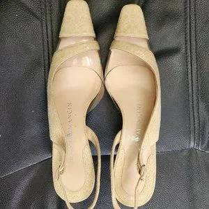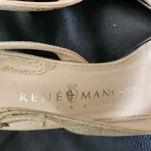 Rene Mancini Cream Leather Reptile Skin Heels Slingback Shoes 35.5 Vintage