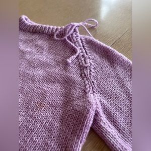 This gorgeous little sweater is about as precious as it gets! Hand knit with love, heirloom quality. Such a sweet detail with the bow embellishment on the front left shoulder!! Too cute!!
