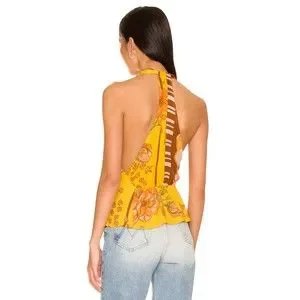 Free People Hot Tropics Tank Top XS Floral Print Halter Yellow Boho Chic New