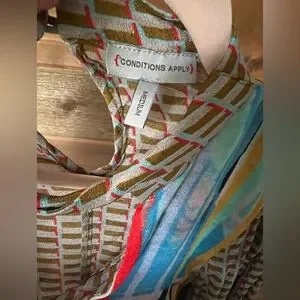 This runs small for a medium in my opinion. See measurements. Two small buttons at back of neck.