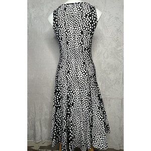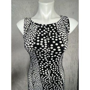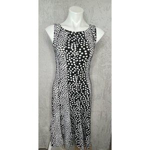 Women's Forever Jersey Knit Sleeveless Fit n Flare Dress Black White Dot Stretch. Size small