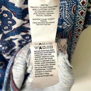 Lucky Brand Boho Top with 3/4 length sleeves and split tail detail