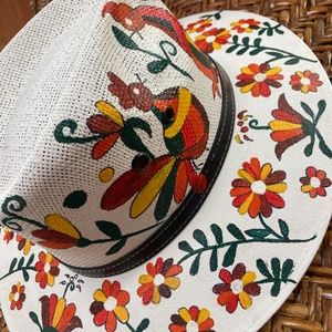 Adorable hand painted cowboy hat, not sure on the size but measurements are in photos. A treasure ! One of a kind, never worn!