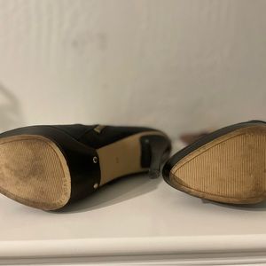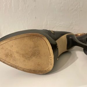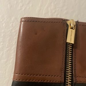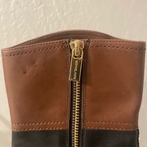 Michael Kors Stockard Two Tone Black Mocha/Brown Leather Platform Heel Boots 6M