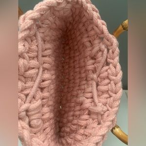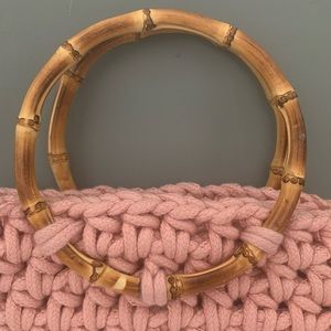 Mini Crochet Baby Pink Bag With Bamboo Handle