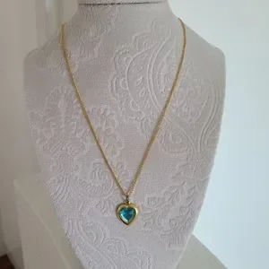 Pre-owned, blue Heart gold Tone Necklace. Good condition.