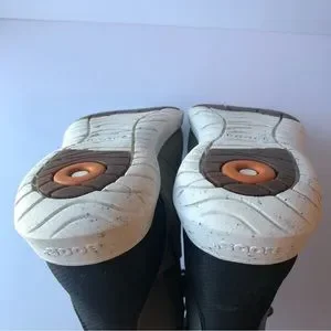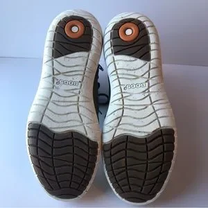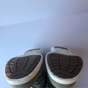 In excellent used like new condition as shown. Minor scuff by the toe box as shown and along the sides of the shoes. Some small darker marks throughout the shoes on the leather as shown. Small pull on the pull tab as shown. Barely worn, just tried on and briefly worn outside. No wear on the outsoles as shown in the photos basically new.