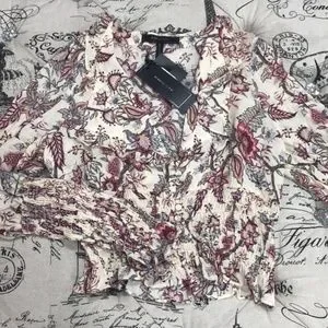 BCBGMAXAZRIA Floral-Print Flounce Blouse