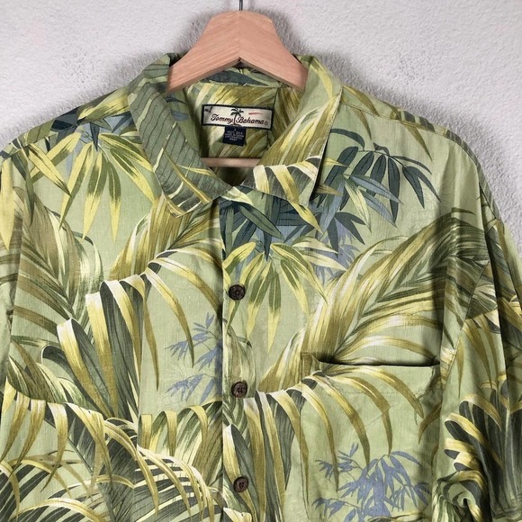 tommy Bahama Shirt Silk Green Tropical Print Button Up Casual Size Large
