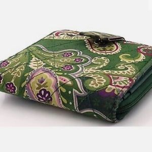 Vera Bradley Bifold Wallet Zippered Coin Button Enclosure Chelsea Green Floral