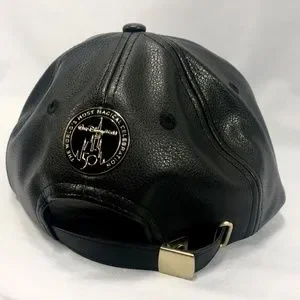 Walt Disney World 50th Anniversary Logo Black Baseball Cap Hat Faux Leather NEW