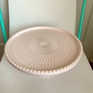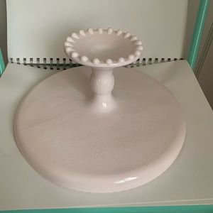 Vintage Jeanette Pale Pink Milk Glass Beaded 10” Cake Stand Pedestal