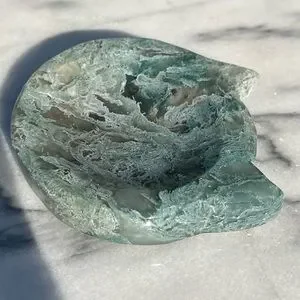 Green Moss Agate Carved Bowl in the shape of a cat