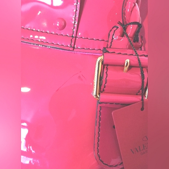 NWT authentic Valentino Garavani large Histoire pink patent leather bag.