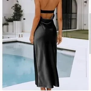 New Satin Tube Sexy Backless Cut Out Formal black dress