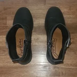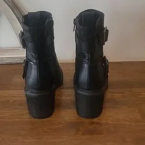 Excellent condition! Worn once. Size 8. Zippers work. Boots have 2 decorative buckles, an inside zipper and are heeled.