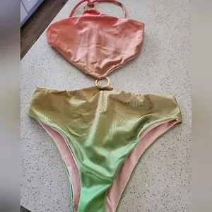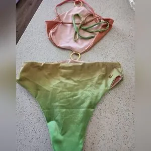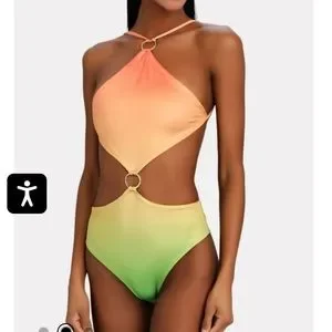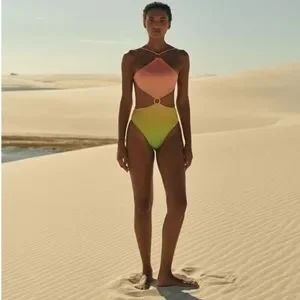 This contemporary one-piece swimsuit from BAOBAB is cut with an open center, pieced together by an O-ring detail. Finished in a punchy ombréeffect, this style is cut with a cheeky fit.