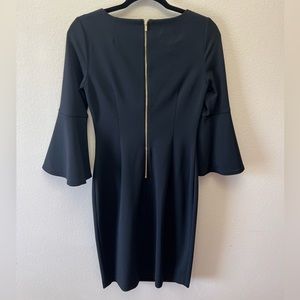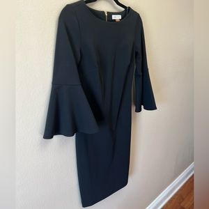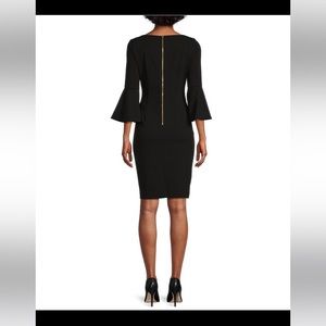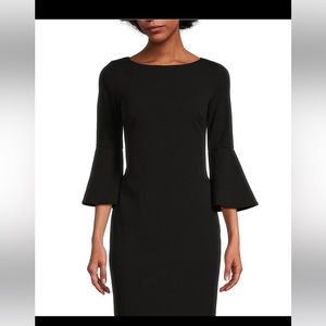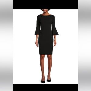 CALVIN KLEIN 3/4 Bell Sleeve Boat Neck Sheath Dress, Black, Size 2