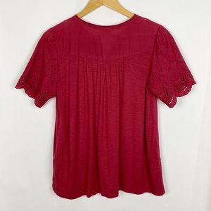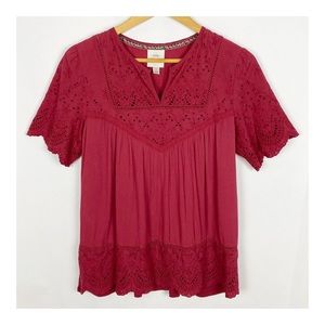 Knox Rose Flutter Sleeve Eyelet Peasant Boho Top Maroon Size Small