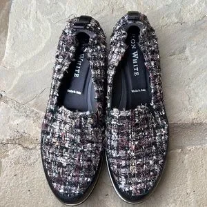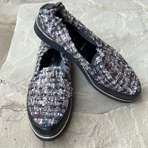 Lightweight and comfortable Sha-Nell black multi tweed slip on’s by Ron White