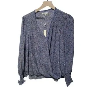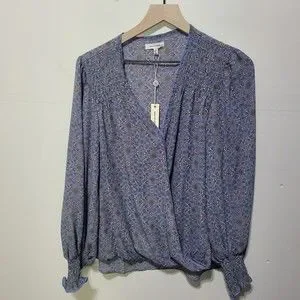 Max Studio Women's Crepe Shirtale Wrap Floral Print Surplice Blouse L