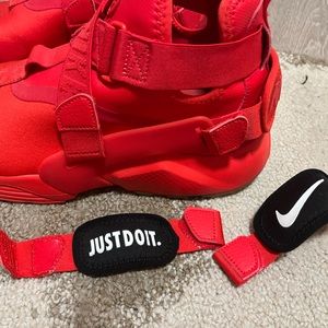 Red Nike Air shoes that are gently used. They come with two options of heel panel, both pictured. Women’s 9, bought at Portland OR Nike flagship store.