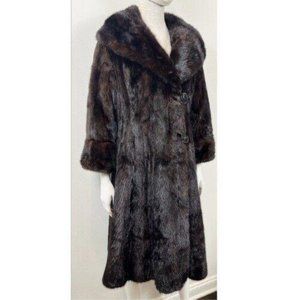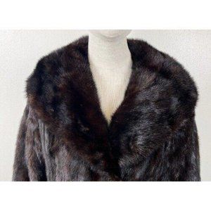 STUNNING 1950'S BIRGER CHRISTENSEN MINK MID SWING COAT IN A SIZE M/L. THE COAT FEATURES A 3 BUTTON CLOSURE WITH ORIGINAL BUTTONS, 3/4 SLEEVES, PLUSH OVERSIZED COLLAR, FULLY LINED, PELTED MINK BODY FRONT HIDDEN POCKETS. MADE IN DENMARK AND AUTHENTIC.