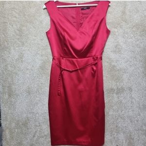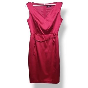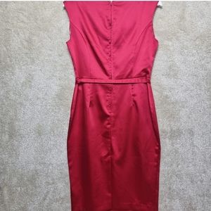 George Satin Dress Size 12 Red Pencil Dress Sweatheart Neckline Knee Length Belt