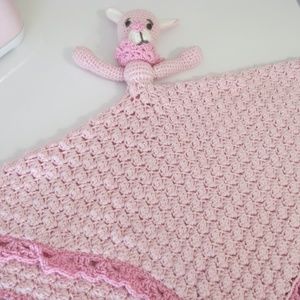 Newborn baby pink crochet lovey blanket 28" x 31" EUC