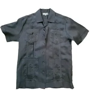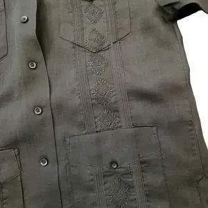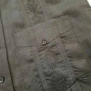 Succeso UOMO by Phita Men's Black Guayabera 4 pockets and multiple fashionable buttons embroidery design and spread collar, both of these shirts the small and large are worn once items.