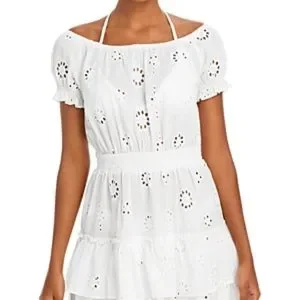 Aqua Eyelet Tiered Peasant Dress