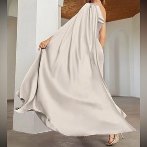 Luxe light gray one shoulder party formal evening wedding prom satin dress
