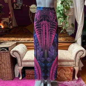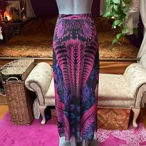 Vintage Lip Service Pink & Purple Cyber Alien Skeleton Mesh Maxi Skirt