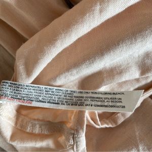 Free People - Don’t Mind If I Do - Midi - Dress - Size XS - Barley Peach - Wrap with a side tie and hook on the V neck fastening - Cotton Linen Mix - 3/4 sleeve - asymmetrical hemline - unlined - perfect for casual, work, going out, holidays.
