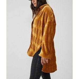 Stand out in this so special button-front top featured in a stunning velvet fabrication with ribbed, smock-inspired detailing throughout for added dimension.