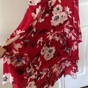 I.N.C. International Concepts. NWT. Size 16P. High/low red floral wrap dress. The front length measures 41” and the back length is 49.” Never worn except to try on. Excellent condition!