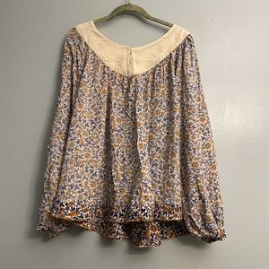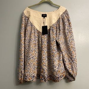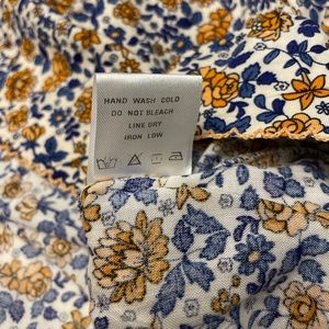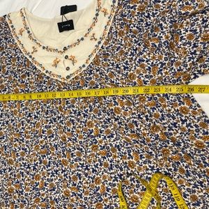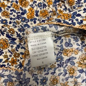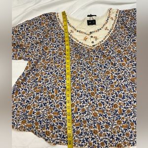 This top is brand new. It was never worn. Perfect for the warm weather. The material is light and breathable. Multicolored floral design. It is a very pretty top.