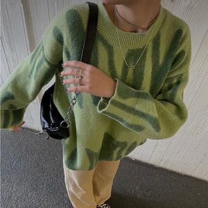 Urban outfitters green swirl knit sweater from Europe. Size Small, but an oversized fit. We’ll loved and worn a handful of times.