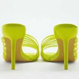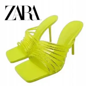Zara New With Tags Vinyl Clear Lime Green Rhinestone High Heels Squared Toe Dress Sandals Shoes, nwt.