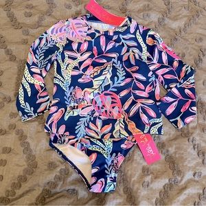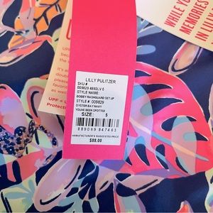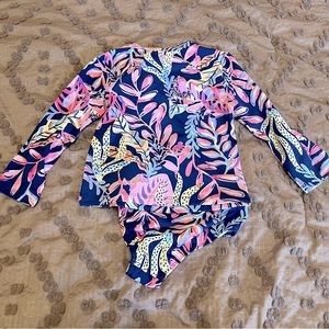 NWT Lilly Pulitzer Bobby Rashguard Set Up - Oyster Bay Navy You’ve Been Spotted Girls Size 5. Keep your little Lilly lover sun-safe in style with the Girls' Bobby Rashguard Set. This brightly printed swim set for your mini includes a rashguard top and matching bottoms with UPF 50+ sun protection.