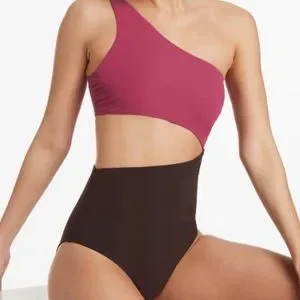 Anthropologie Jets Australia Versa One Shoulder Color Block Cutouts Swimsuit 12