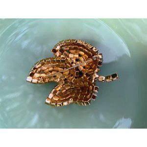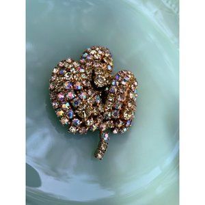 Vintage 1960s Large AB Rhinestone Cluster Leaf Brooch