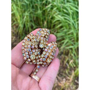 Here for your consideration is a lovely very sparkly AB rhinestone brooch. It measures 2.5x2". This is in very good vintage condition.