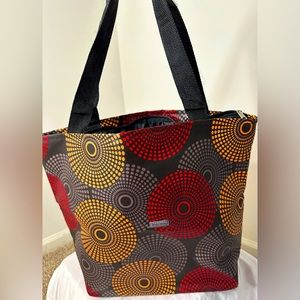 Ankara tot bags with black handles, they are durable, spacious and can be used for various purposes, they have unique beautiful patterns. They are made in Kenya.