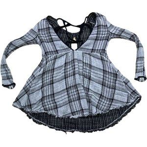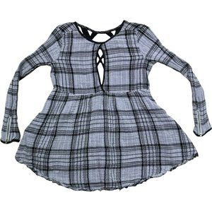 Free People Plaid Swing Shirt Dress Tunic Top Dress Gray Black Size XS Womens